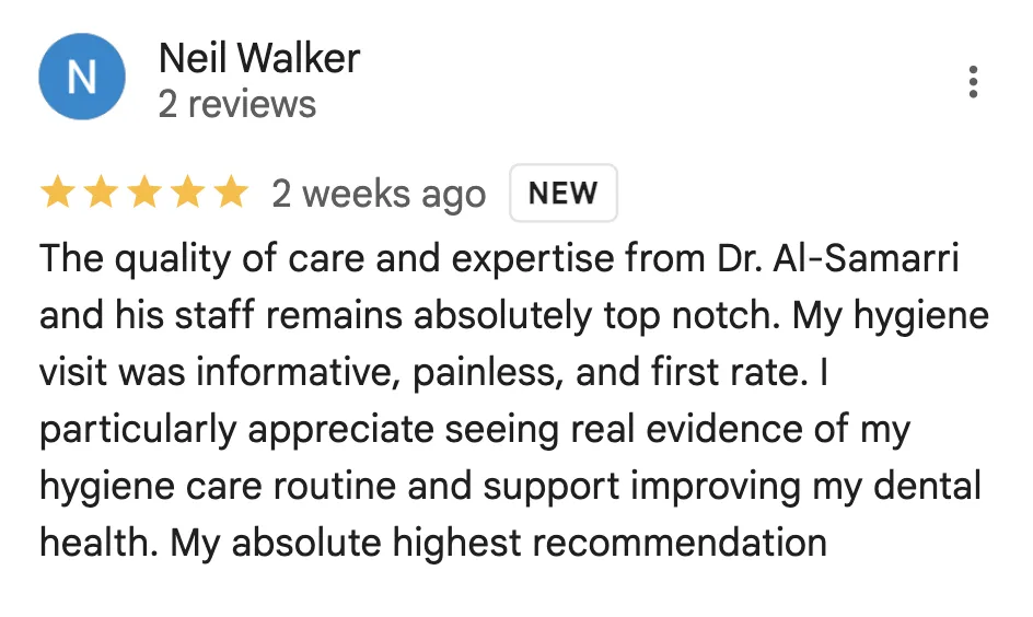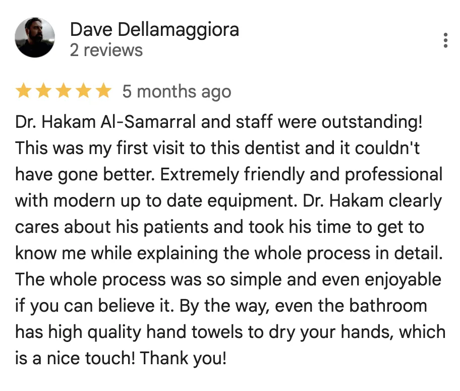 With his wealth of experience in dentistry, commitment to continuing education, and a background in marketing, data, content creation, and management, Dr. Hakam Al-Samarrai has gained valuable expertise in a broad range of subjects within and beyond his field. Dr. Al-Samarrai has an eclectic understanding of subjects in the field of dentistry and medicine, has helped thousands achieve optimal oral health, and works closely with patients to educate, encourage, and inspire. He brings 10+ years of skill to the table, actively volunteers in the community, and continues to pursue lifelong learning.