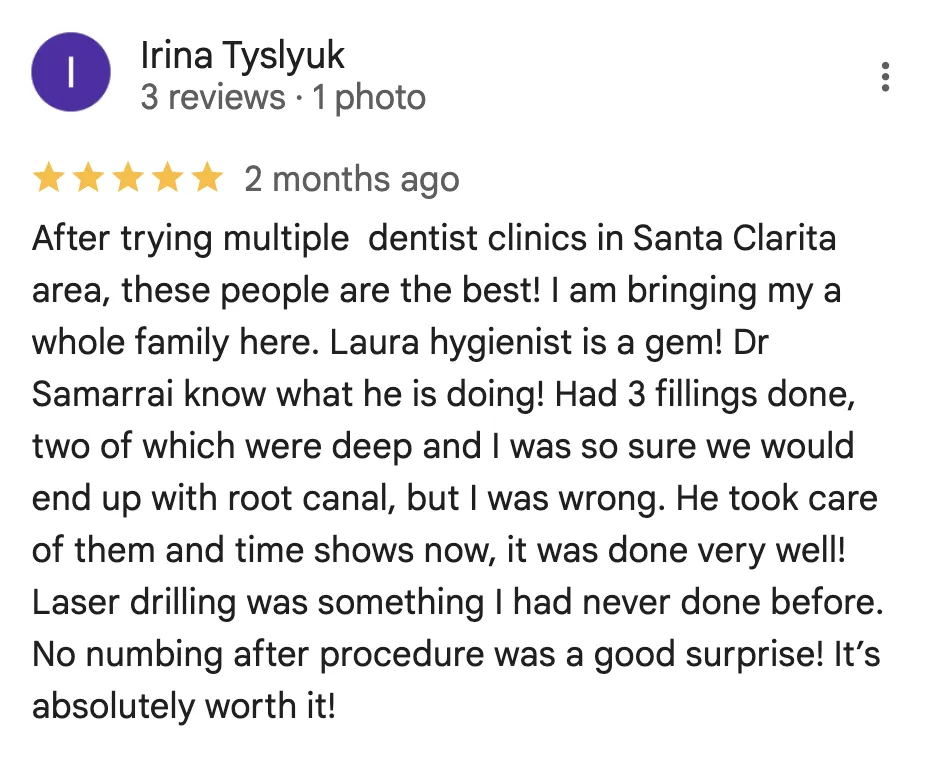 Since graduating from Tufts University School of Dental Medicine with honors in 2010, Dr. Al-Samarrai worked as an Associate Dentist throughout Texas and California, and has served as faculty staff for the USC Dentistry Division of the Skid Row Homeless Healthcare Initiative before settling into practice here. Dr. Al-Samarrai has also been honored by the UCLA Neuroscience division, UCLA TIDE Program, and the Torrance Sister City Association.